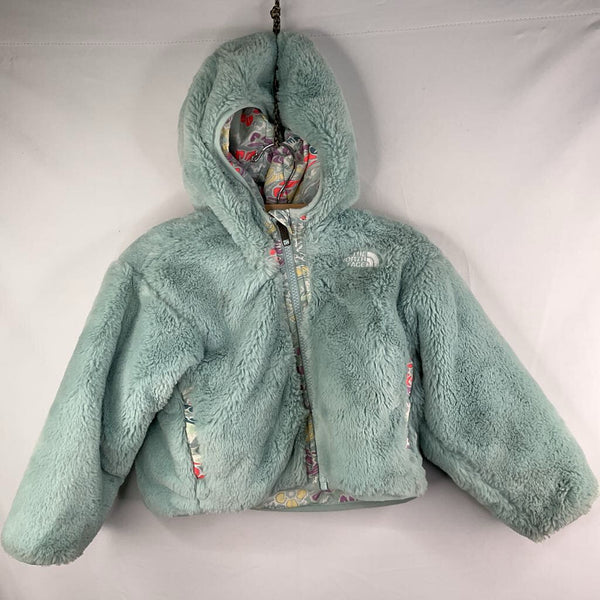 Size 2: The North Face Blue/Multi Floral Fleece/Poly Reversible Hooded Jacket