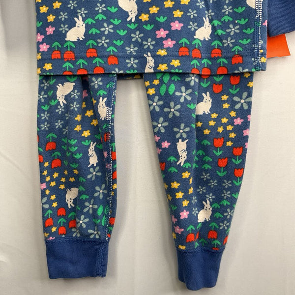 Size 4 (100): Hanna Andersson Blue/Multi Bunny Floral Organic Cotton 2pc PJs