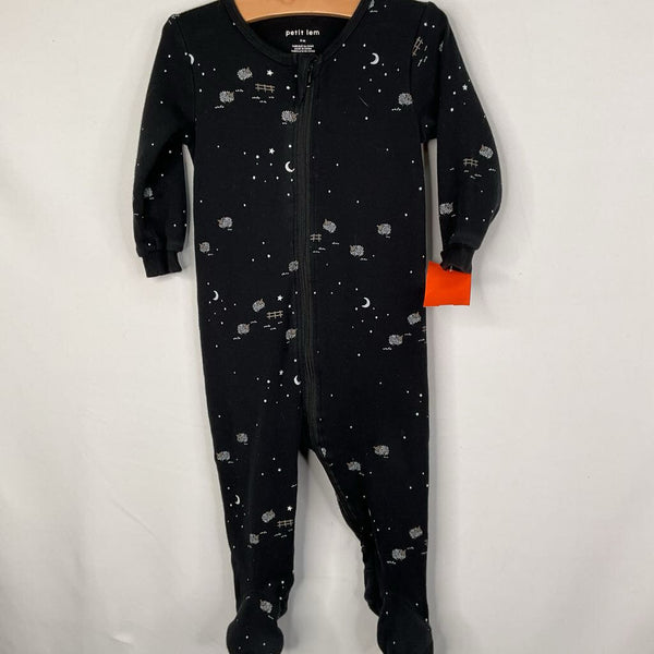 Size 9-12m: Petit Lem Black/White Sheep 1pc Zip-Up Footy PJs