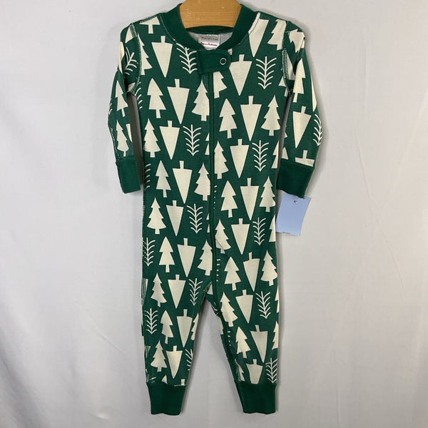 Size 6-12m (70): Hanna Andersson Green/White Trees 1pc Zip Holiday PJs