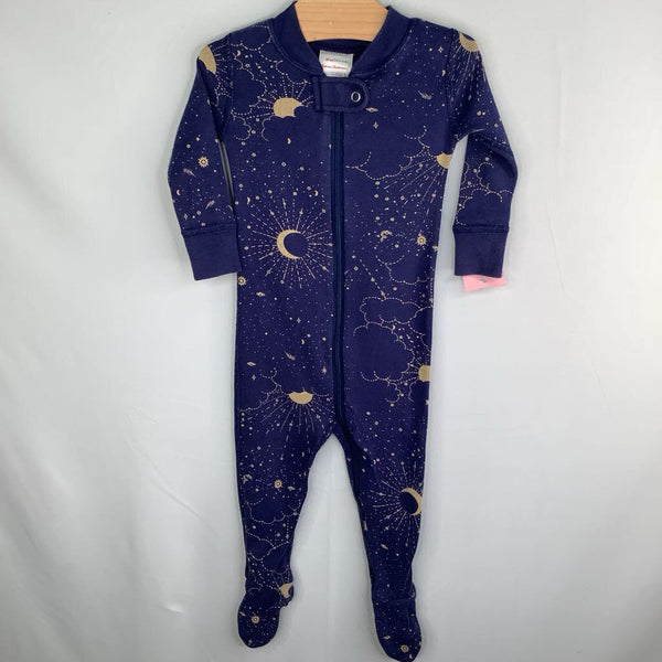 Size 3-6m (60): Hanna Andersson Navy/Yellow Stars & Moon Organic Cotton 1pc Zip-Up PJs