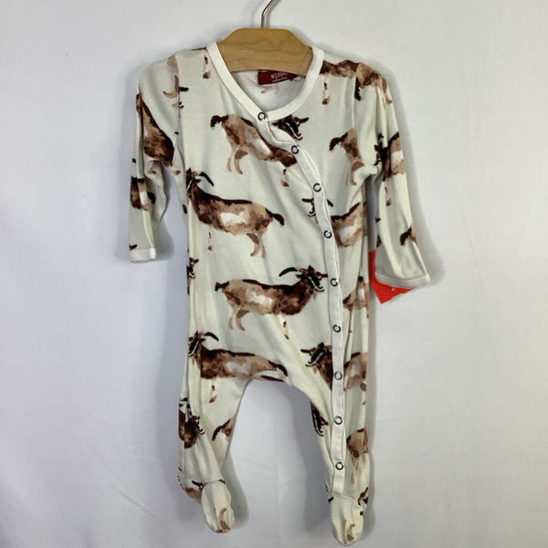 Size 3-6m: Milkbarn Green/Brown Goats Snap Footy Romper