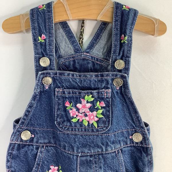 Size 3-6m: Blue/Pink Floral Embroidered Denim Overalls