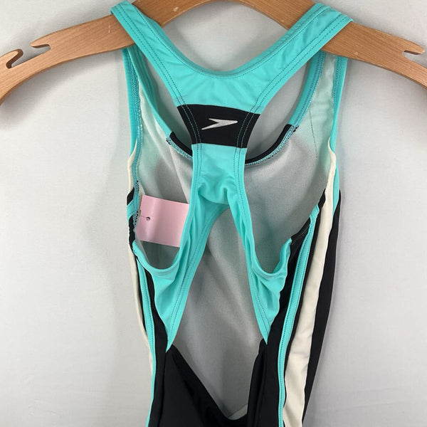 Size 8: Speedo Black/White/Blue 1pc Swimsuit