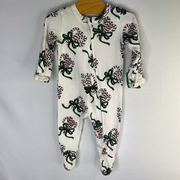 Size 0-3m: Kate Quinn White/Red/Green Candy Canes 1pc Zip-Up Holiday Footy PJs