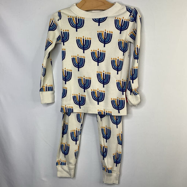 Size 3 (90): Hanna Andersson Blue/White Menorahs/Snowflakes Organic Cotton 2pc Holiday PJs