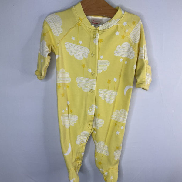 Size 0-3m (50): Hanna Andersson Yellow/White Clouds Snap Footy PJs