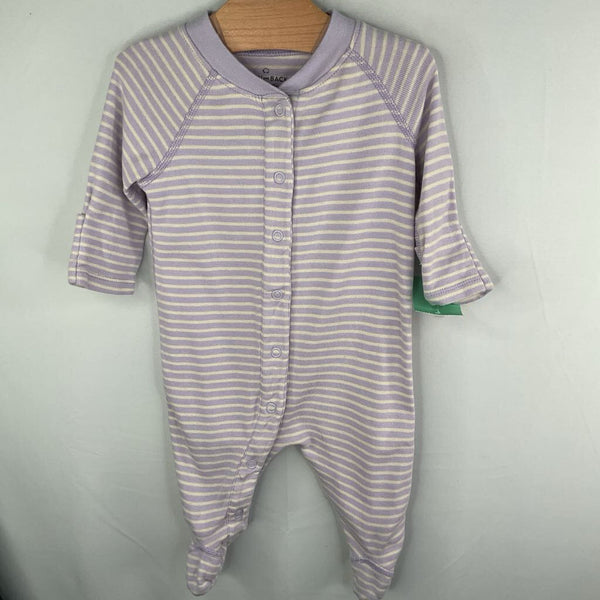 Size 0-3m (50): Hanna Andersson Purple/Yellow Striped Snap Footy PJs
