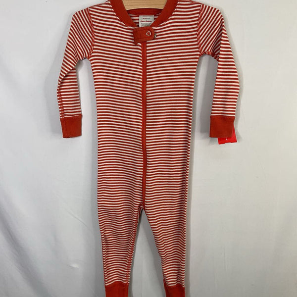 Size 2 (85): Hanna Andersson Orange/White Striped Organic Cotton 1pc Zip PJs