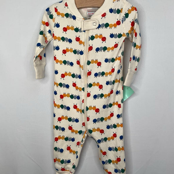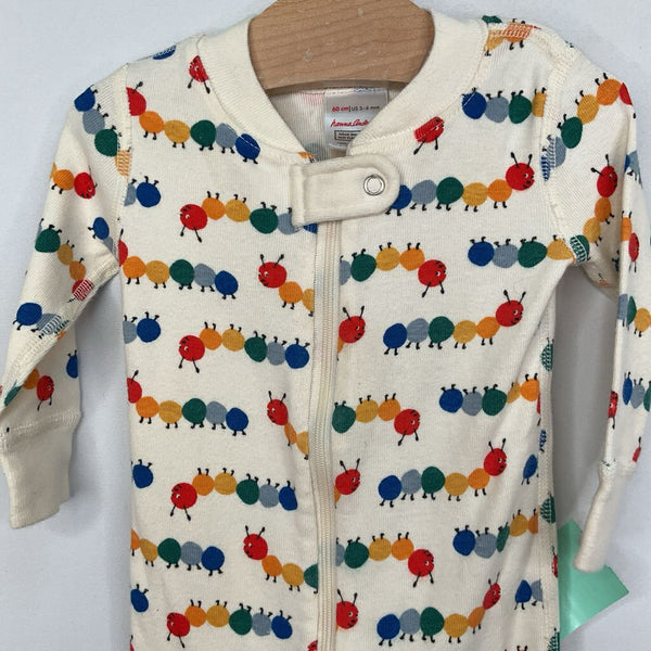 Size 3-6m (60): Hanna Andersson White/Rainbow Caterpillar Organic Cotton 1pc Zip-Up PJs
