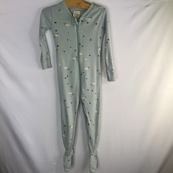 Size 3 (90): Hanna Andersson Blue Birds/Rainbows Organic Cotton 1pc Zip PJs