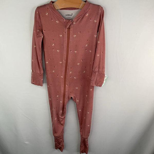 Size 6-12m: Wildbird Pink Birds Tencel 1pc Zip PJs