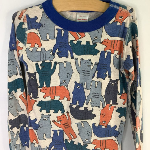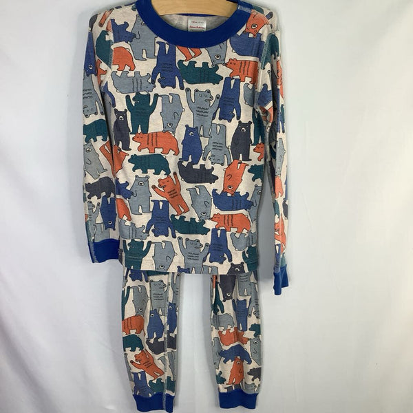 Size 6-7 (120): Hanna Andersson Gray/Multi Bears Organic Cotton 2pc PJs