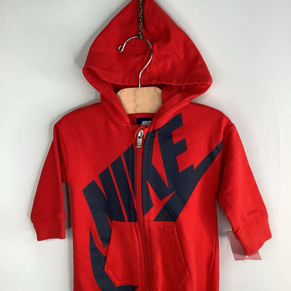 Size 6-9m: Nike Red/Navy Logo Hooded Romper