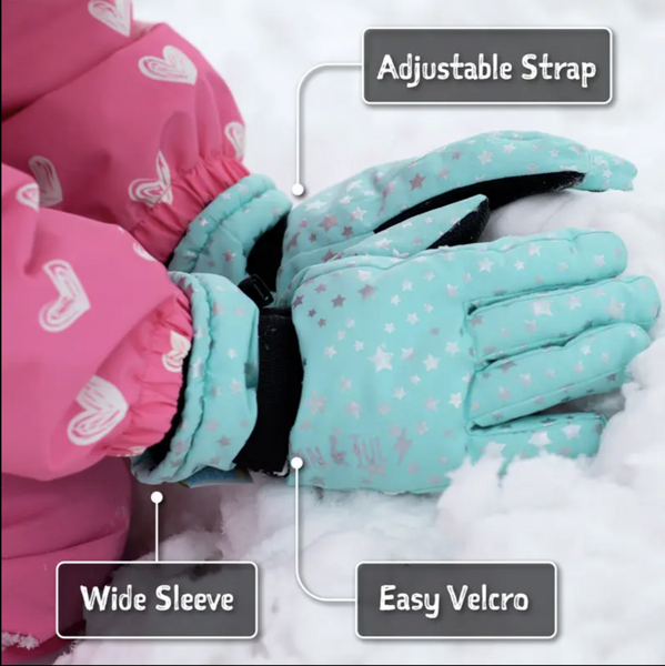 Waterproof: keep little hands warm cozy in snow, rain or slushy. Stay-on: easy double tightening ensures stay-put gloves. Keep snow out: with wide sleeve opening and one-pull closure. Windproof and soil repellent.